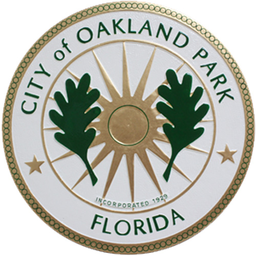 We have provided the City of Oakland Park, Florida with our solid mahogany wooden wall seals and emblem plaques. Now available are our traditional solid mahogany wooden plaques or you can order our indoor-outdoor High Density Urethane plaques. Order online or call our design consultants between 9:00 a.m. EST and 6:00 p.m. at 1-800-381-9457.