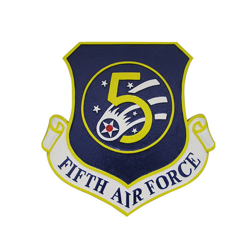 Since 1991 we have provided United States Air Force (USAF) Fifth Air Force offices with wooden wall seals and emblem plaques. Now available are our traditional solid mahogany wooden plaques or you can order our indoor-outdoor High Density Urethane plaques. Order online or call our design consultants between 9:00 a.m. EST and 6:00 p.m. at 1-800-381-9457. Order turnaround is two to six weeks depending on what shipping option you choose. Six-week shipping is FREE! Click here for product reviews. We accept government purchase orders via phone or choose, “purchase order”, in our shopping cart.