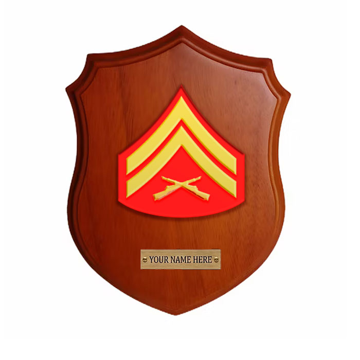 Don’t settle for cheap imitations. Invest in a piece of art that reflects the honor of the E4 rank. With our solid mahogany construction, bas-relief detailing, and versatile design options, the U.S. Marine Corps E4 Corporal Chevron Mahogany Plaque is the ultimate expression of Marine Corps pride. Visit Masterplaques.com today to configure your custom plaque and own a piece of the Gold Standard.
